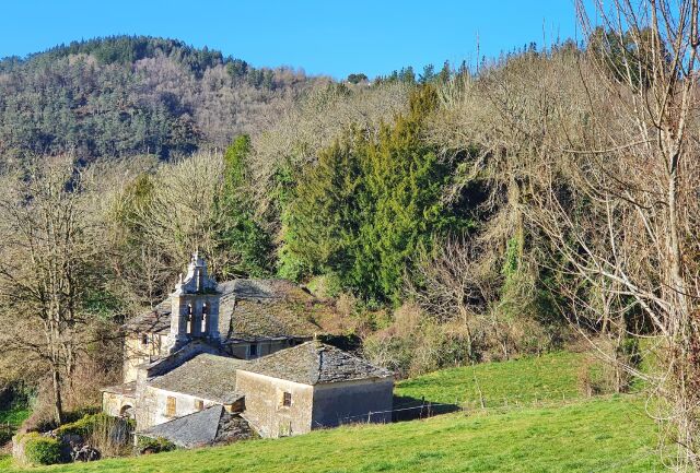 Aparentemente, na súa orixe foi unha pequena capela á que se foron engadindo outras pezas. Destaca a entrada porticada, medio pechada por dous portóns de madeira. Na espadana, hai un campanario con dúas campás. O estado exterior indica abandono, con grandes humidades e posibles afundimentos na cuberta. Con todo, mantén un innegable atractivo visual e unha situación privilexiada no val. Á beira está a reitoral, tamén camiño da ruína.