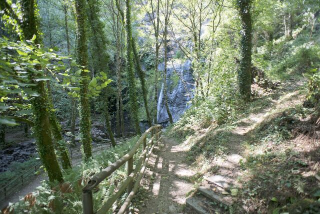 Estamos diante dun espectacular salto de auga natural de máis de 50 metros, posiblemente o maior de Galicia, que remata nunha pequena lagoa. Chégase con facilidade, camiñando por unha pista entre carballos e piñeiros. Ao chegar, unha ponte e pasarelas de madeira facilítannos o tránsito por unha zona dominada por unha mesta fraga de postal e na que o estrondo da auga ao caer, a luz do sol filtrada entre as árbores, as cores do bosque, etc. convídannos a gozar desta contorna.