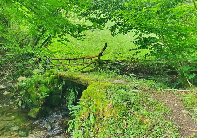 De camiño á torre de Doncos, desviándose un pouco cara Chandevilar, cruzamos un regato que ocupa boa parte do camiño. Para salvalo hai un pequeno pontigo formado por troncos de madeira, seguramente de castiñeiro ou carballo, e apoiados sobre pedras. Todo o conxunto está absolutamente cuberto de musgos e vexetación que case o camuflan co fondo verde do bosque. Un recuncho, sen dúbida, singular, no que é fácil imaxinar ao monxe Hermann Künig cruzando este tipo de pontigos na súa peregrinaxe a Santiago de Compostela.
