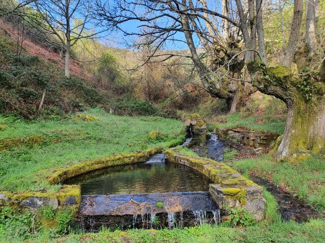No Regueiro de Cabanas, un dos regatos da conca alta do Navia, construíuse un pozo de almacenaxe de auga, que forma un precioso enclave de auga e pedra, rodeado de castiñeiros centenarios e imponentes formacións de rocha caliza, conforma un pequeno merendeiro ou un lugar para gozar tranquilamente da sombra dos castiñeiros e do discorrer da auga.