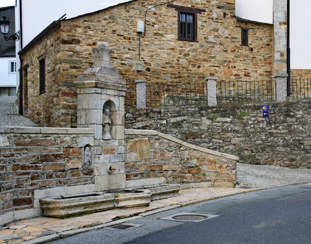 Esta pequena fonte ou Fons Sacrata, situada nun cruzamento de camiños moi transitado, propiciou o asentamento de poboación, dando lugar ao nacemento da Fonsagrada. Unha lenda relacionaa co Apóstolo Santiago e a curación dunha doenza grazas ás súas augas. Detrás dela atópase a igrexa parroquial, de estilo barroco e levantada entre S XVI e XVII. Ambos son un excelente punto de partida para percorrer o pobo e gozar con múltiples micropaisajes.