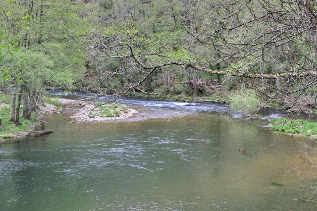 Nesta zona, o río estreitase, formando un profundo canón no que se sitúa a zona. Con abundante vexetación, conta cun refuxio de pescadores, zona de baño e pasarela para cruzar o río Navia. Moi preto de aquí desemboca o río Rao, principal afluente do Navia. Son interesantes dous lugares próximos, a aldea de Embernallúas e, un quilómetro río abaixo, un espectacular meandro de forma triangular que xera un illote chamado "O Coedo" onde podería haber un castro.