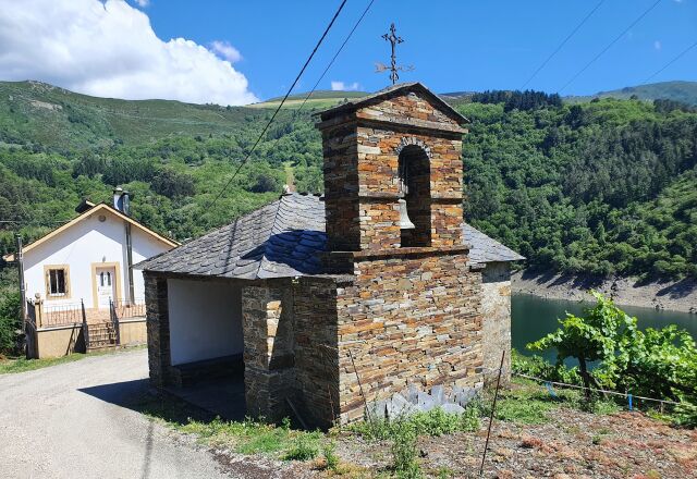A aldea de Entralgo ocupa unha pequena lomba no alto dun meandro do Navia, xa na cola do encoro de Salime. Á entrada, no lado dereito, atópase esta pequena e curiosa capela na que nos chama a atención a localización da espadana e a súa campá, no lado sur, algo nada frecuente. Tamén atopamos outros recunchos, un hórreo, etc.