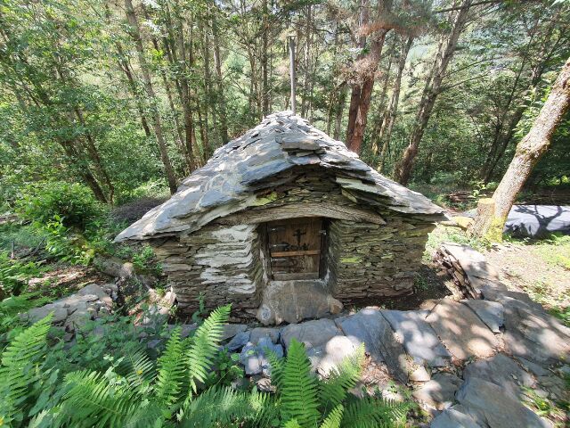 Como noutros casos, estamos diante dunha micropaisaxe moi singular e que, facilmente, podería pasar desapercibido. É unha pequena cabana construída a base de laxas de lousa superpostas e cunha cuberta, a dúas augas, do mesmo material. Fronte á porta, de madeira, con grandes bisagras e unha hai un pequeno corredor de acceso, tamén de lousa. Podemos dicir que é a integración perfecta entre as rocas e o bosque.