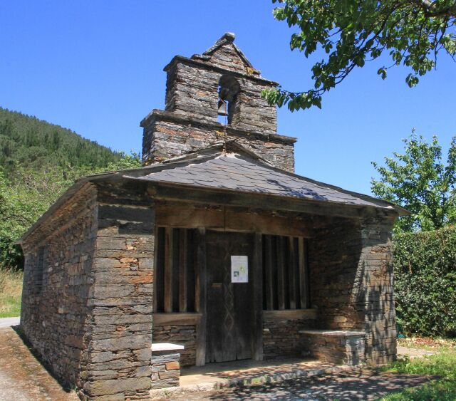 Capela de planta rectangular construída en lousa e coroada por una espadana cun só oco. Conta cun pórtico con cuberta a tres augas na parte frontal a través do cal se accede ao interior, onde alberga un retablo de estilo neoclásico coa representación de Santo Antonio Abade, a Virxe co Neno, Cristo crucificado e Santiago Apóstolo.
