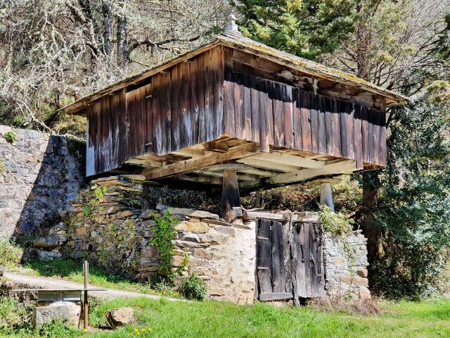 Na parte baixa da vila atopamos un recuncho moi interesante no que destaca un hórreo de boa dimensión e bastante ben conservado. Tamén merece a pena pararse na pequena ponte de madeira, máis ben unha pasarela, sobre o Rego de Valín Seco, que posteriormente se xunta co EO.