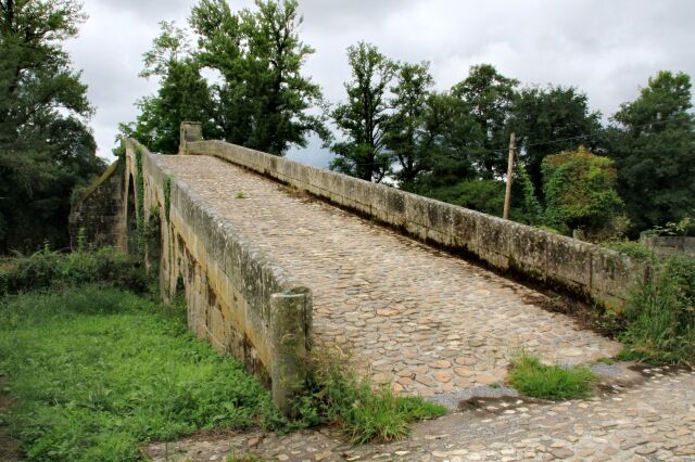 Construído no Século XVI sobre a base dun anterior, posiblemente romano xa que por aquí pasaba unha calzada. Trátase dunha peza de gran porte, con sesenta e dous metros de lonxitude e unha calzada de tres e medio, ten forma de "grupa de camelo" pola súa significativa elevación central. Construído en granito, destaca o impoñente piar central, cunha significativa estrutura de corte de auga, que nos dá idea da forza do río Neira neste punto.